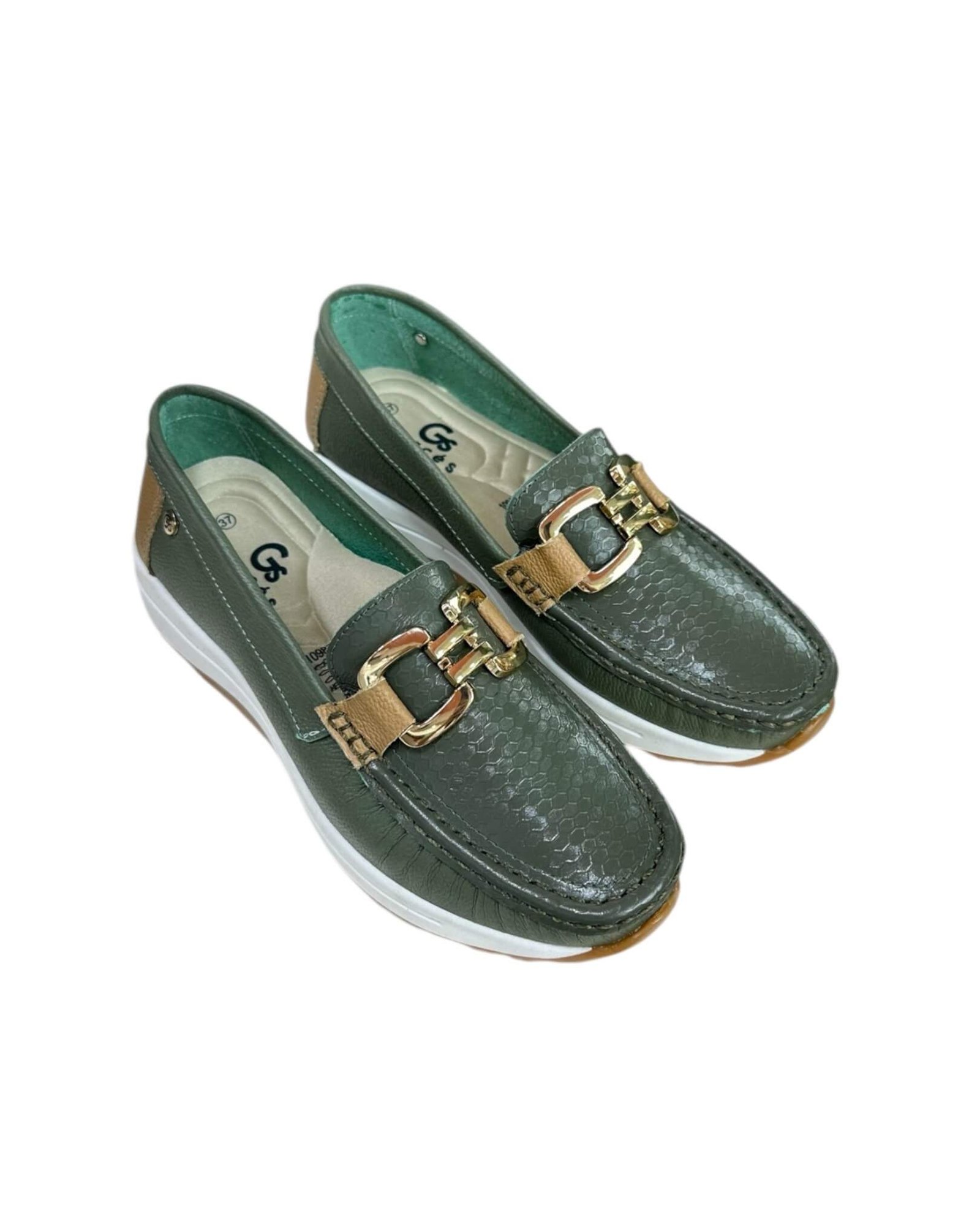 Mocasin Antonella Verde Aceituna x Camel